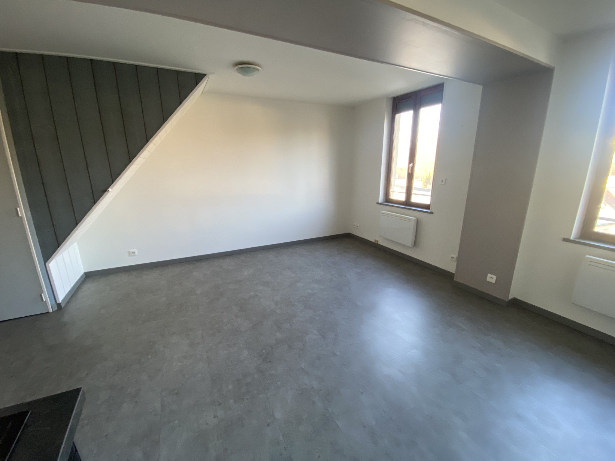 Maison de ville de type 3 comprenant au rez de chaussée un séjour avec cuisine aménagée équipée, une chambre, une salle d'eau, un WC, et à l'étage, une chambre/mezzanine ,Un terrain et un grenier. Disponible le 4 juin 2026.