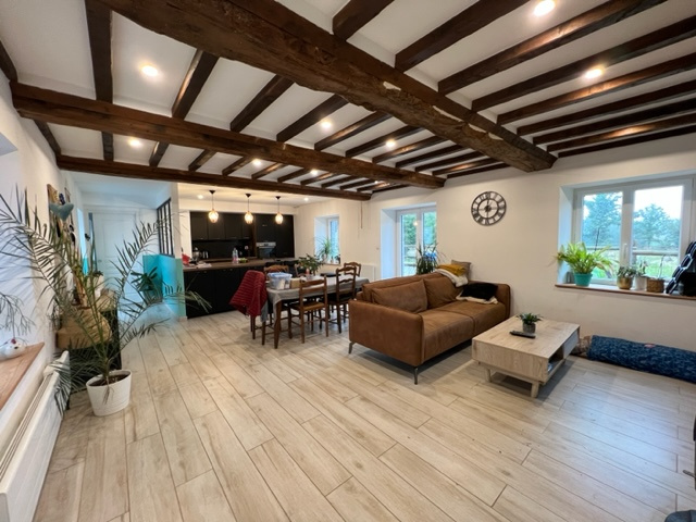 Vous trouverez cette maison rénovée dans la campagne viroise, comprenant une entrée, une pièce de vie au goût du jour de 45m² avec cuisine aménagée, 4 chambres dont une au RDC avec dressing, 2 salle de bains, buanderie , dépendance, double garage, poulailler le tout sur un terrain d'environ 5800m².