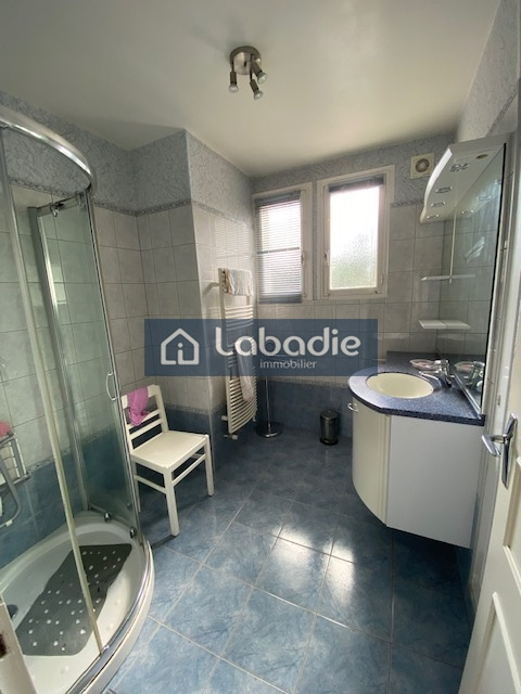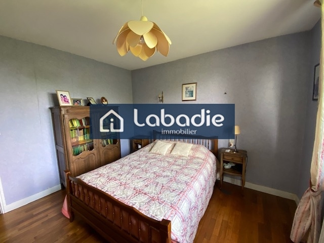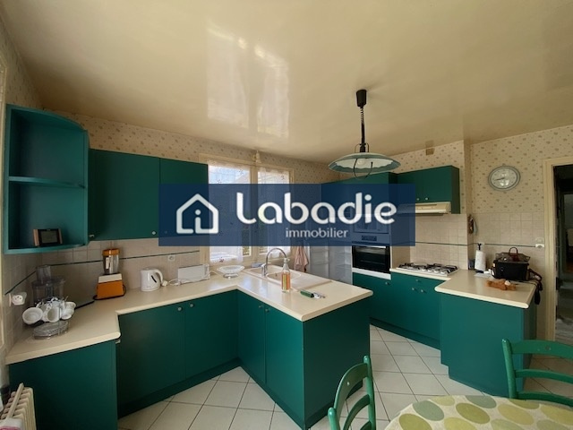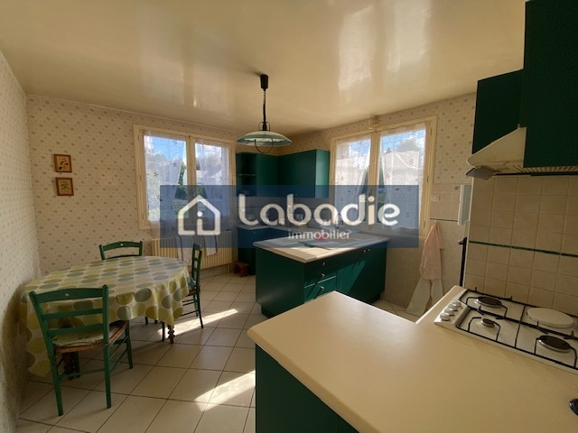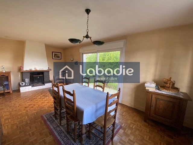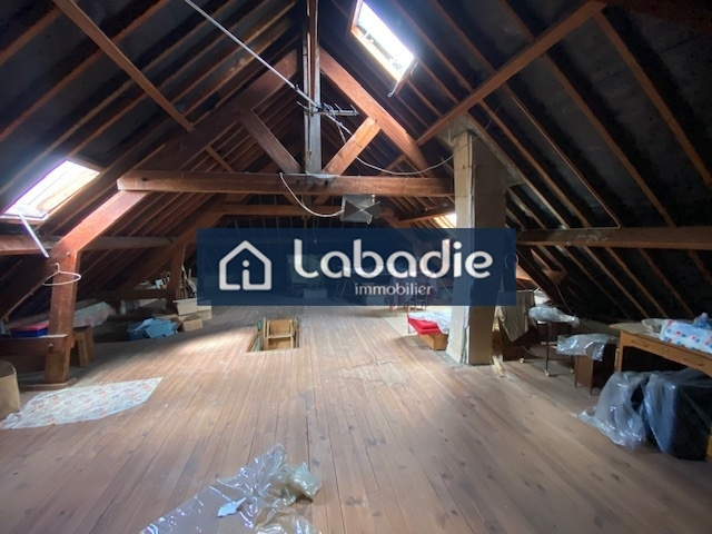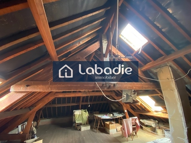 LABADIE IMMOBILIER vous propose dans un secteur recherché, à 2 pas du centre ville, maison d'habitation de 88m² sur sous-sol complet, couverte en tuiles, comprenant : entrée avec placard, grande cuisine dinatoîre, séjour/salon avec cheminée ouverte, couloir, 3 chambres, salle d'eau, wc. Vous pourrez exploiter un magnifique grenier aménageable (surface habitable : 50m²; surface au sol : 95m²) pour augmenter la surface habitable. Chauffage par pompe à chaleur. Ballon d'eau chaude thermodynamique. Terrain de 882m². "Travaux à prévoir"