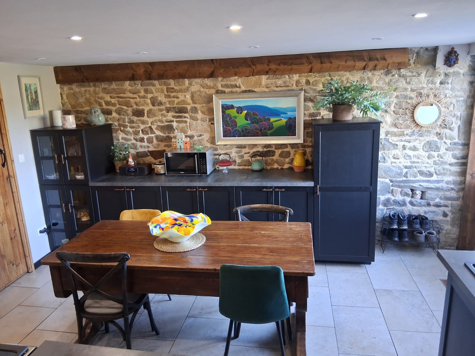 A environ 6/7km de Vire, longère en pierres pleine de charme en excellent état, d'une surface habitable de 115m², comprenant : hall d'entrée, cuisine aménagée, séjour/salon avec poële à granulés, 3 chambres, 2 salles d'eau, 2 wc. DPE : C. terrain de 4138m². Une très belle rénovation qui allie le moderne avec l'ancien. A découvrir !!