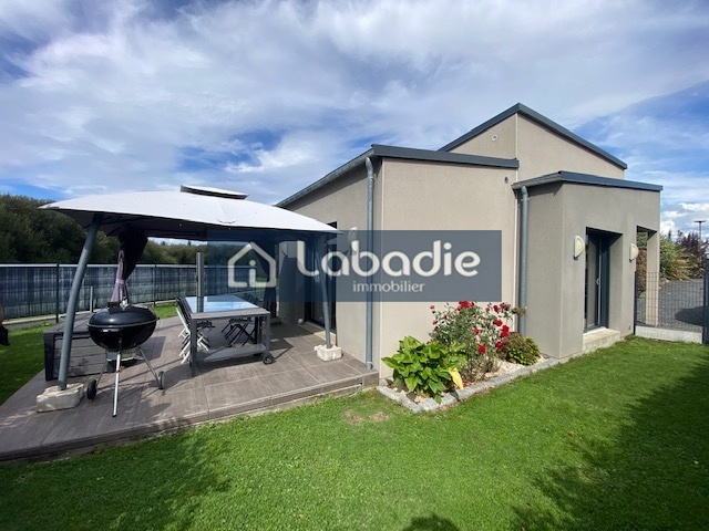 Nouveau, à Vire, entre centre ville et zone commerciale, maison d'habitation de construction récente (2019) de plain-pied avec accès PMR, lumineuse et bien exposée, d'une surface habitable de 99,57m², comprenant : cuisine aménagée et équipée ouverte sur un séjour/salon donnant sur une terrasse carrelée de 42m², 1 chambre avec salle d'eau privative, 2 autres chambres, salle d'eau, wc, cellier. Contigü à la maison : un garage. Chauffage au sol par une pompe à chaleur, ballon thermodynamique, vmc double flux, spots led dans toute la maison, porte de garage électrique. UN BIEN RARE A LA VENTE !