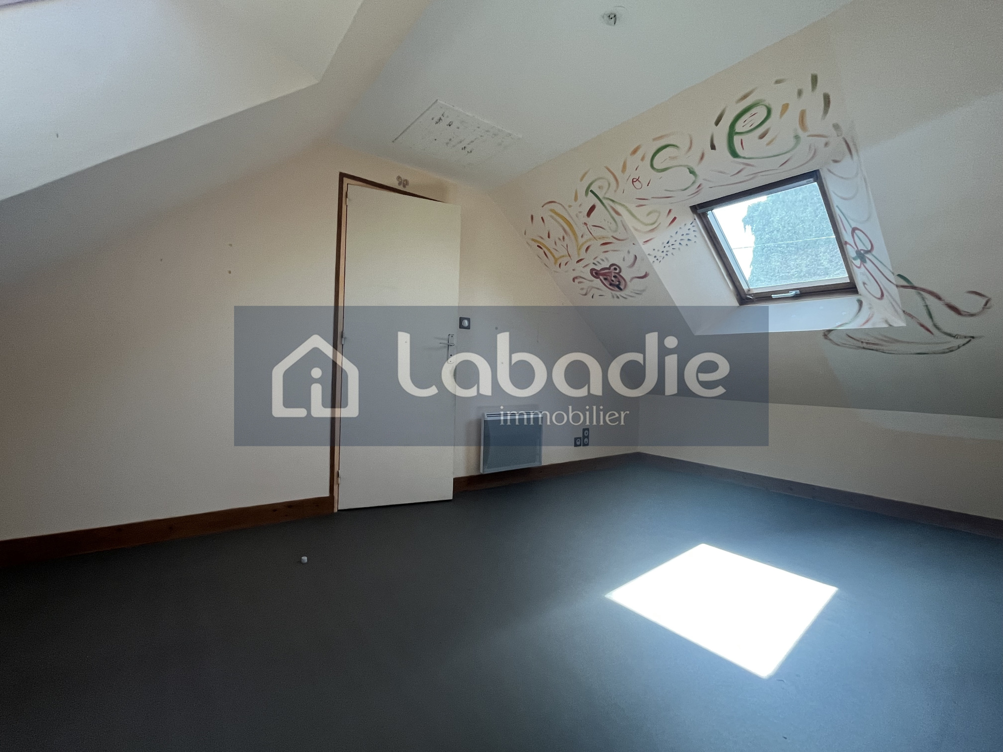 À l'étage, une grande mezzanine, deux grandes chambres, une pièce pouvant être aménagée en salle d'eau ou bureau, et un WC.