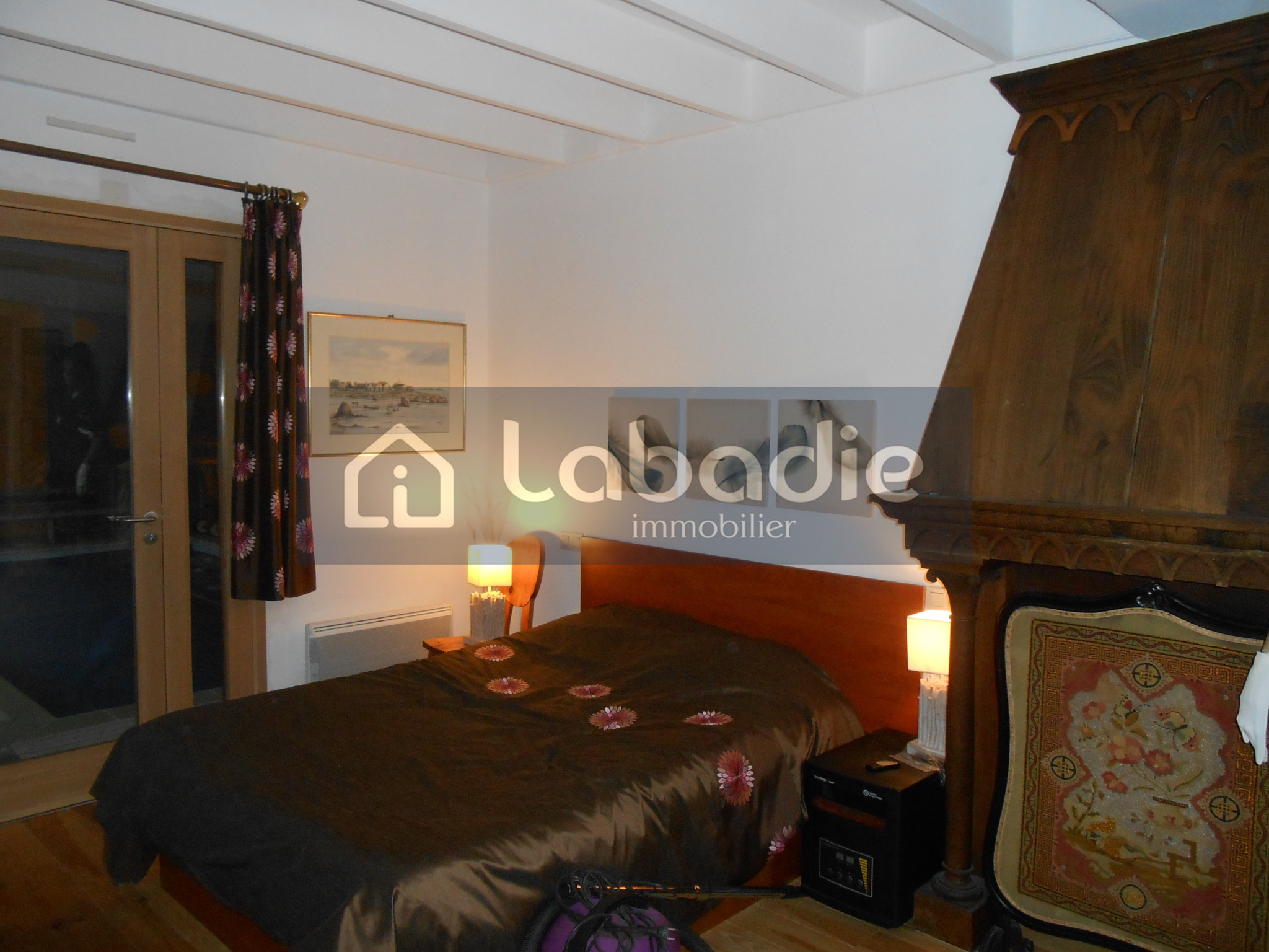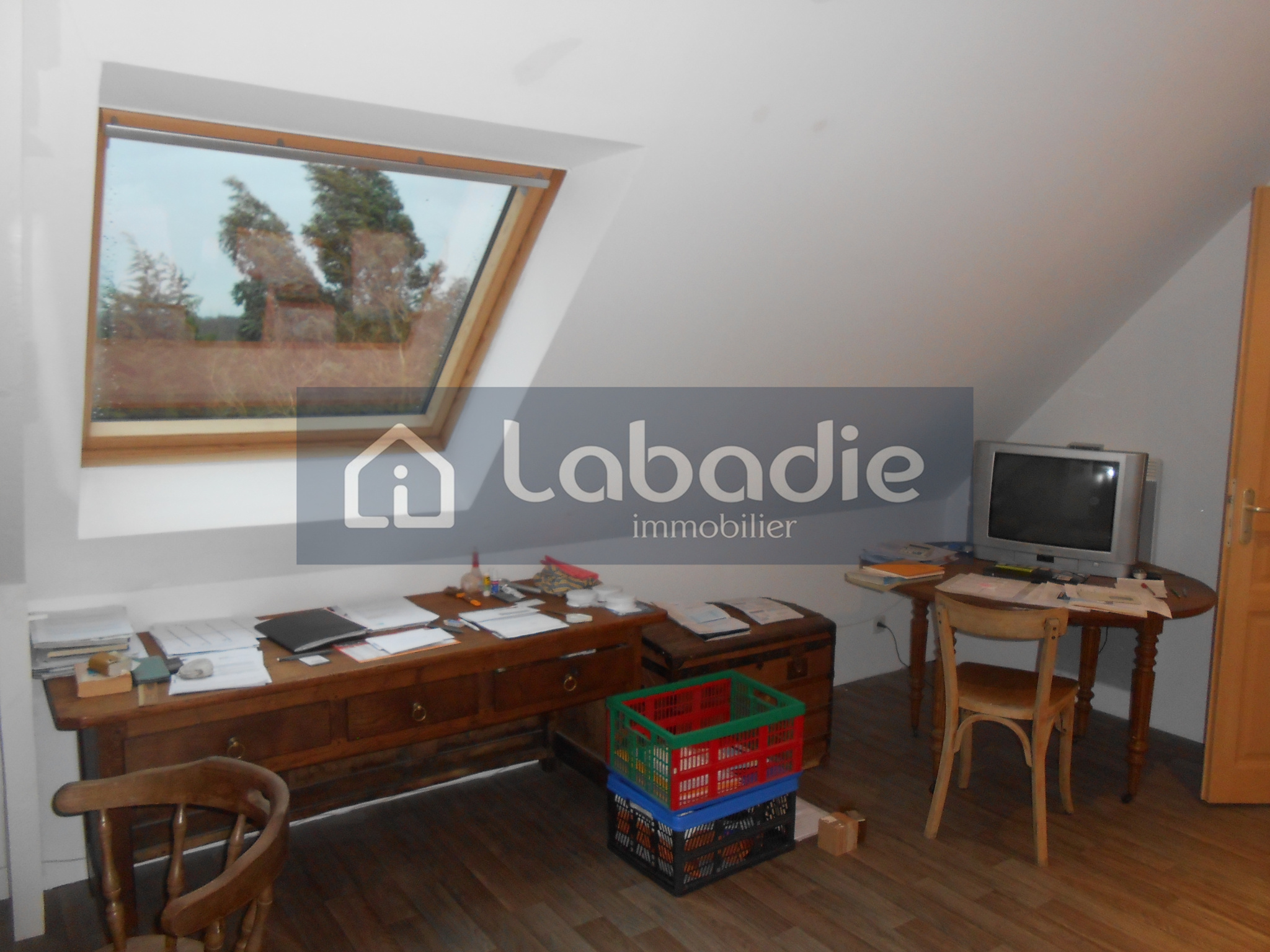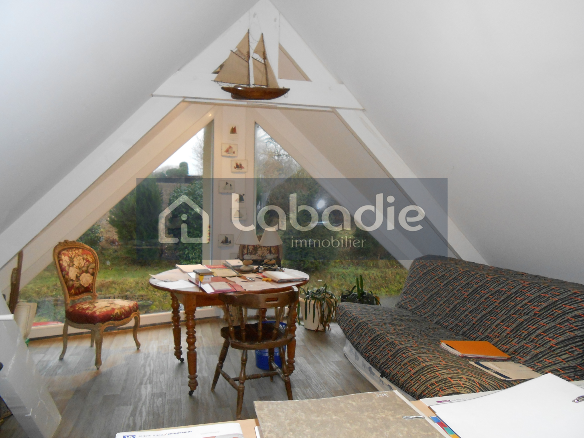 À l’étage, une mezzanine dessert un bureau, une chambre, une salle d’eau et un WC.