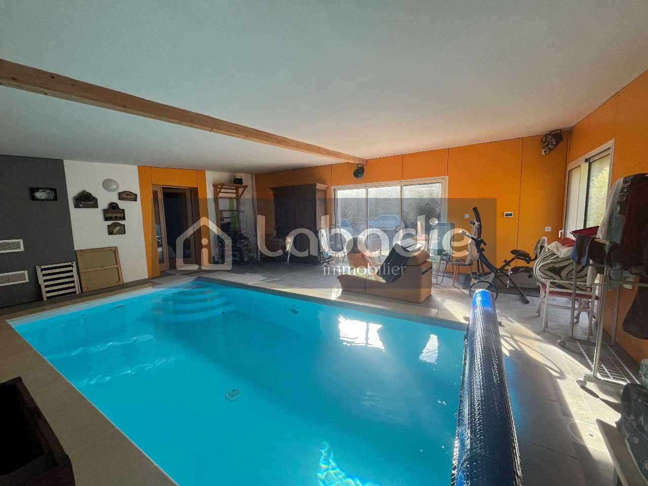 Au rez-de-chaussée, vous profiterez d’un vaste séjour-salon lumineux agrémenté d’un poêle à bois, d’une cuisine aménagée et équipée, d’un WC avec lave-mains, d’une salle d’eau et d’une chambre. Un véritable atout : une pièce dédiée à la piscine intérieure réalisée sur plan d'architecte et équipée d’un système de nage à contre-courant, pour profiter des plaisirs de la baignade toute l’année.