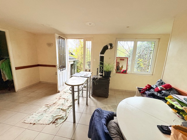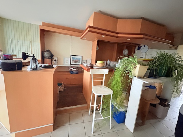 Proche de l'A84 Ancien commerce transformable en habitation comprenant Bar, salle donnant sur jardin, reserve, wc au RDC palier, 2 chambres, SDB, terrasse à l'étage, une dépendance let garage e tout sur un jardin de 238m².